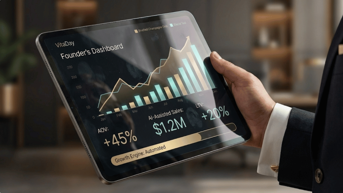 The VitaDay Project transforms a traditional supplement shop into an automated revenue machine. By integrating high-end design with AI-driven logic, we streamline the path from discovery to purchase. The result is a "Digital Twin" of the brand's expertise that handles customer engagement and scales sales 24/7.